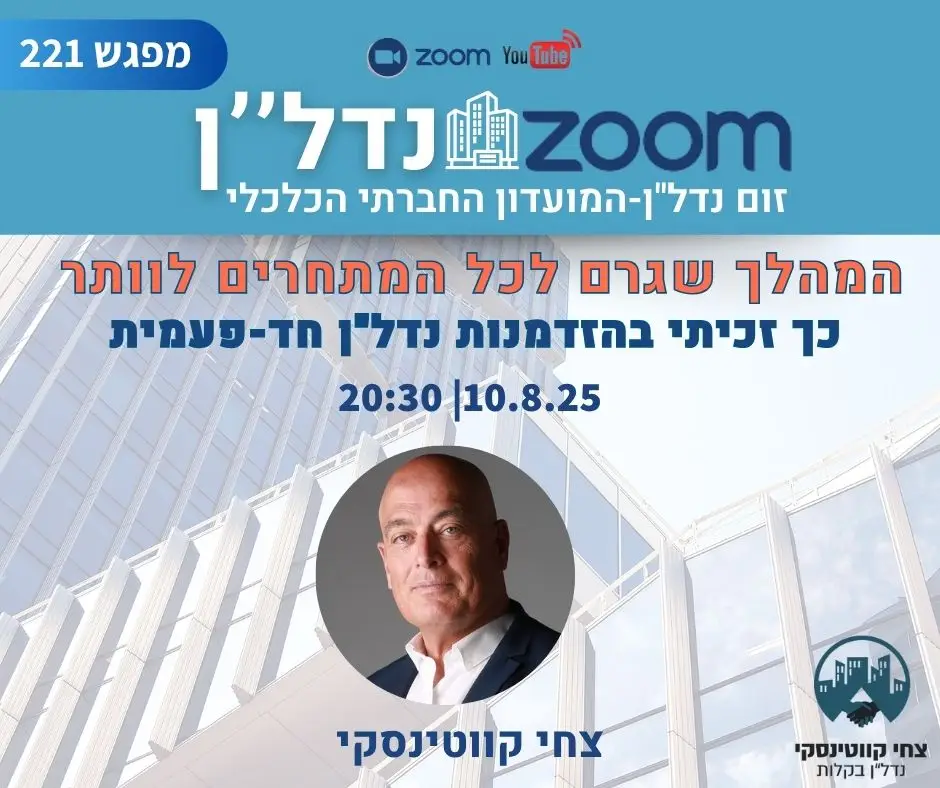המהלך שגרם לכל המתחרים לוותר – וכך זכיתי בהזדמנות נדל"ן חד-פעמית 10.8.25 20:30 זום נדל"ן 221 – ההקלטה