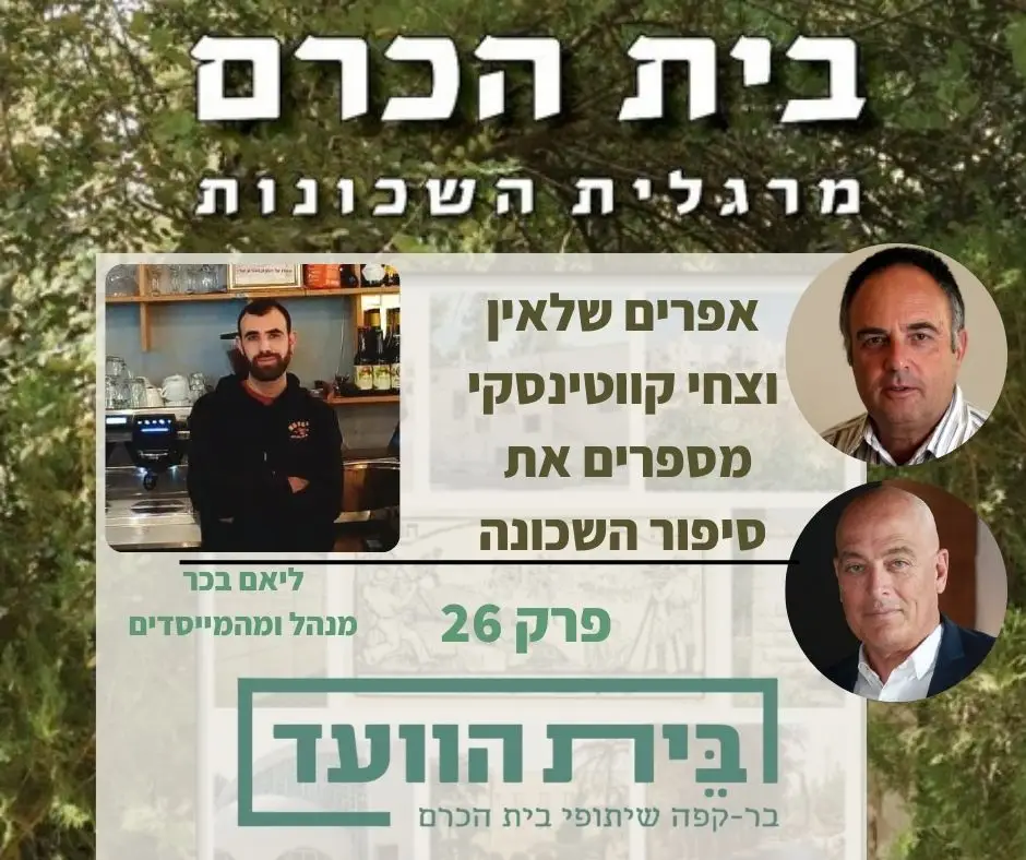 להאזנה לפודקסט לצפייה בפודקסט איך בית קפה הפך ללב הפועם של שכונה שלמה? ☕️ בפרק חדש של הפודקאסט "בית הכרם מרגלית השכונות", מבית "נדל"ן בשידור", אפרים שלאין וצחי קווטינסקי מארחים