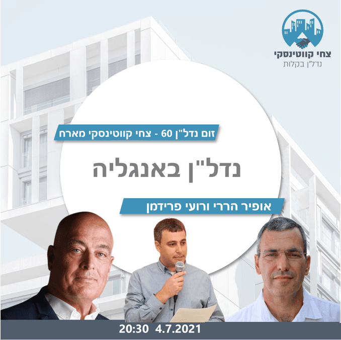 בזום נדל"ן 60, אירחתי אמש, 4.7.2021 את אופיר הררי ואת רועי פרידמן, העוסקים בנדל"ן באנגליה, ובין השאר מלווים משקיעי נדל"ן מישראל הרוצים להשקיע שם. ולא, אנגליה היא לא רק לונדון, […]